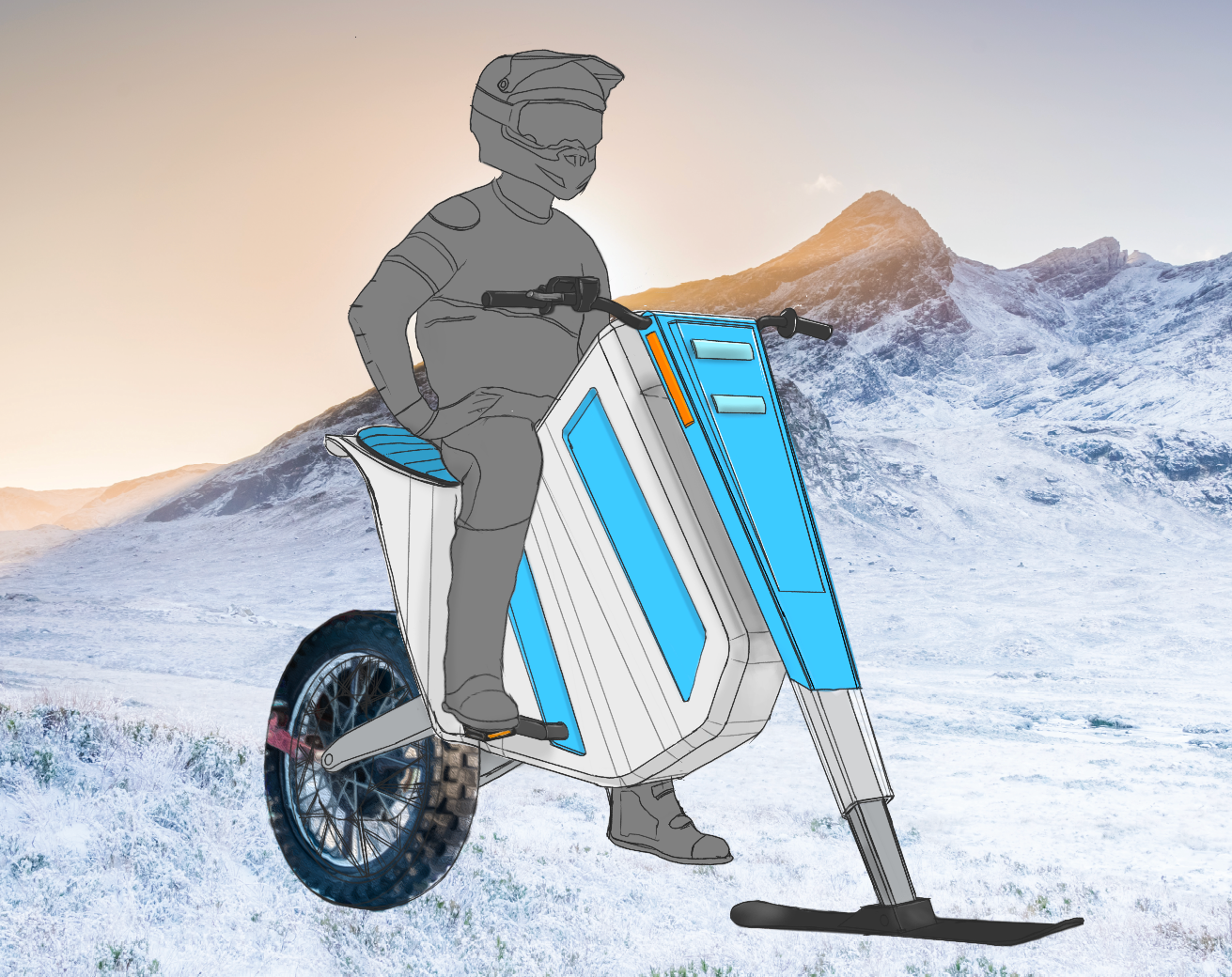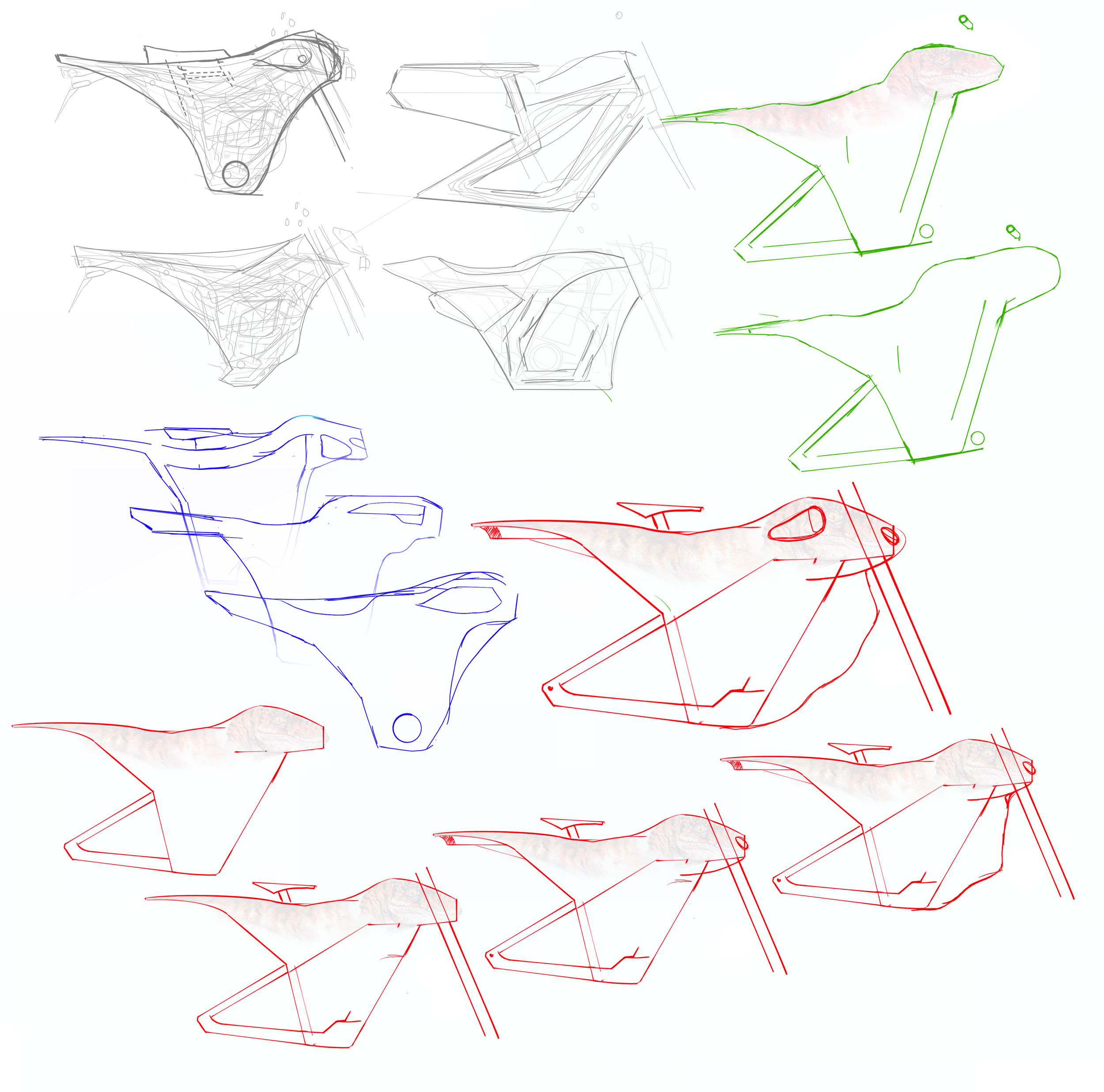 I continued to explore different body shapes, expanding the body into the area freed up by the lack of a front wheel.
